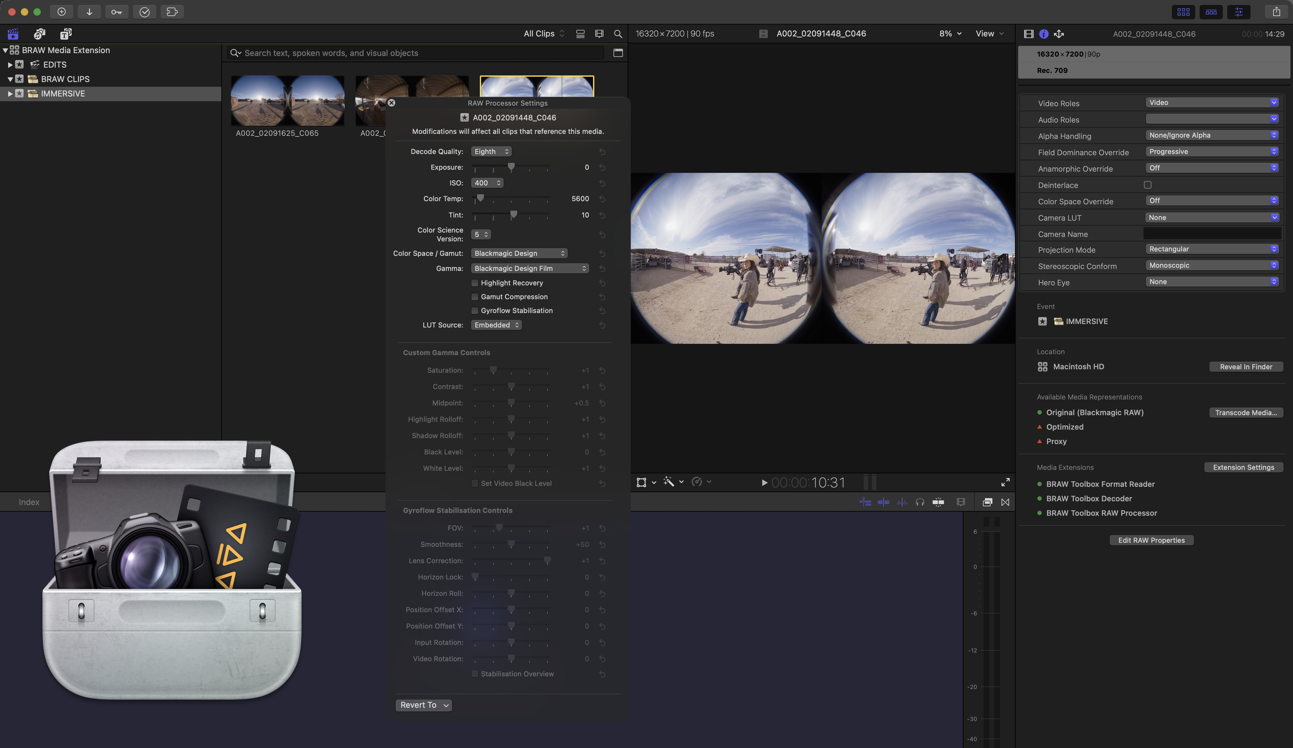 - BRAW settings inspector locks to dark appearance to match FCP's other inspectors.