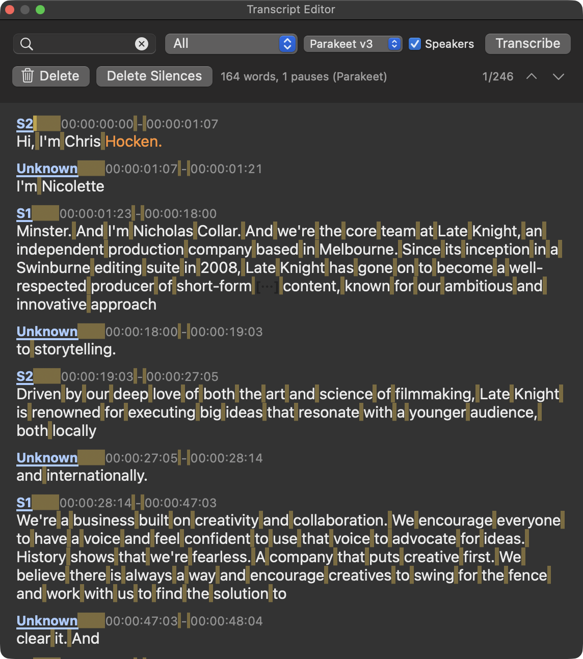 - Improved Parakeet error messages with specific guidance for common failures (short clips, missing media, network issues, disk space, permissions, Apple Silicon requirement)