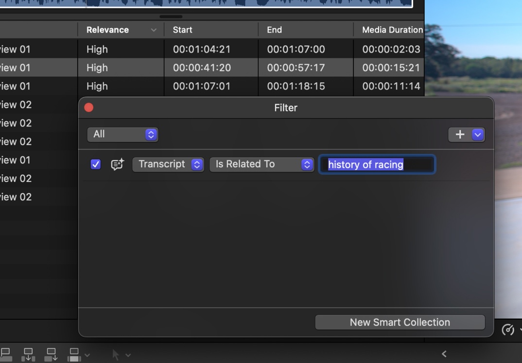 With Transcript Search, you'll be able to search through all your dialogue in your Library and find specific words and phrases by entering a description using natural language - i.e. in the example below, they're searching all the transcripts that have ranges that are related to the history of racing (as opposed to finding the words "history of racing"). You'll also obviously be able to search for exact words/phrases too.