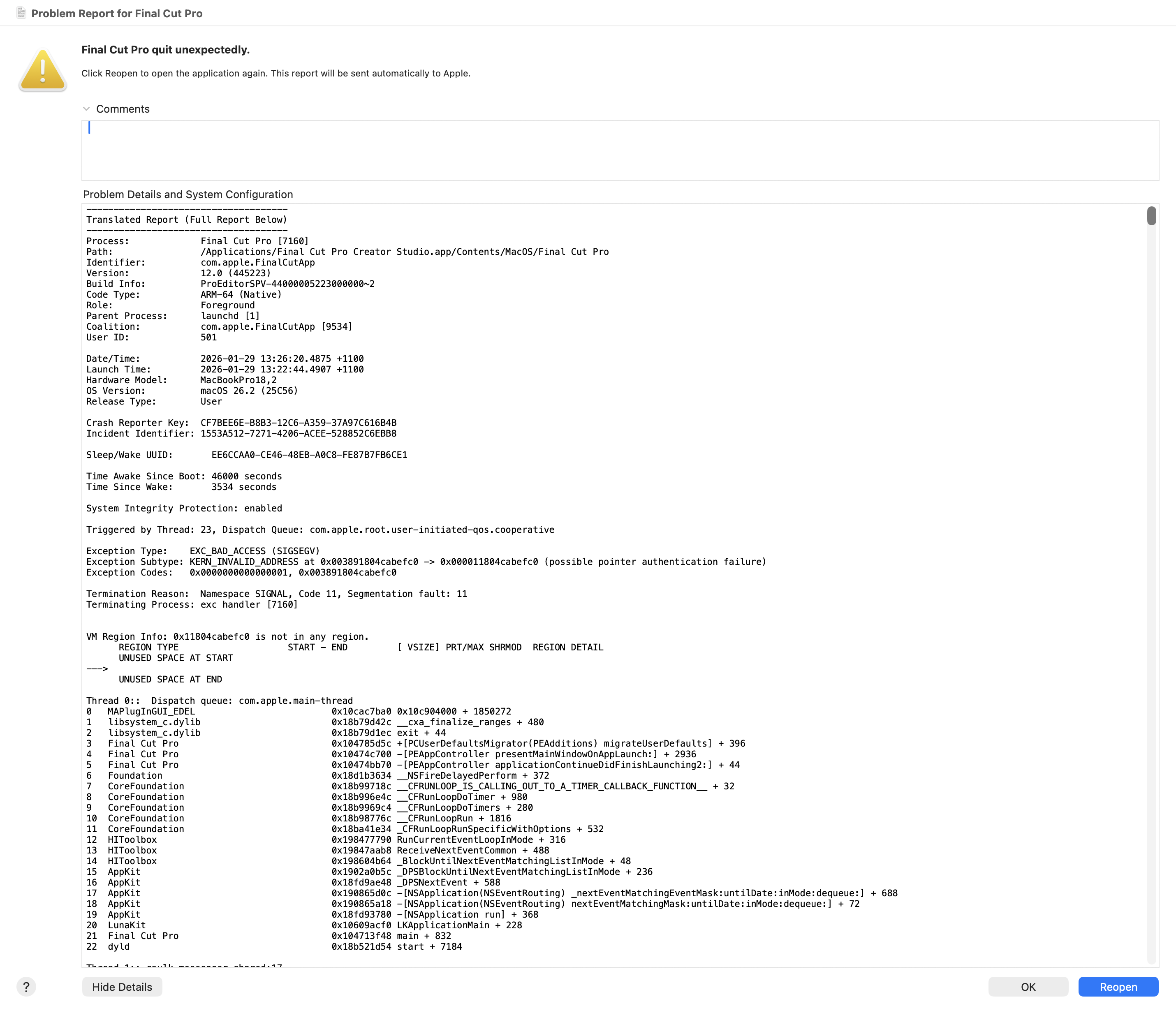 However, generally speaking Final Cut Pro v12.0 worked pretty well today - and did what it needed to do.