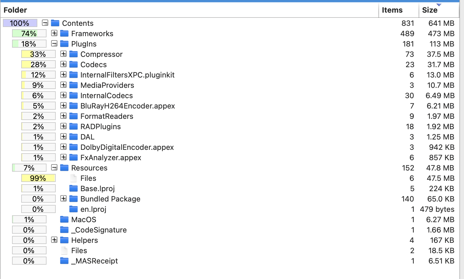 Final Cut Pro on Mac has 54 frameworks, whereas Final Cut Pro on iPad has a whopping 102 frameworks.